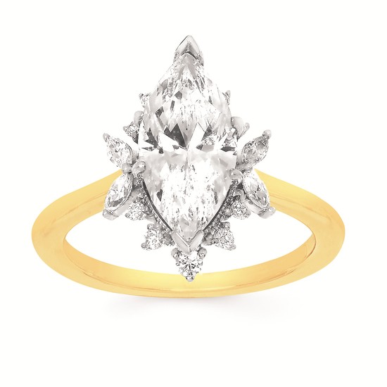 Forever ElegantĀ® 1/4 Ctw. Diamond Semi Mount shown with 1 1/2 Ct. Marquise Center Diamond in 14K Gold